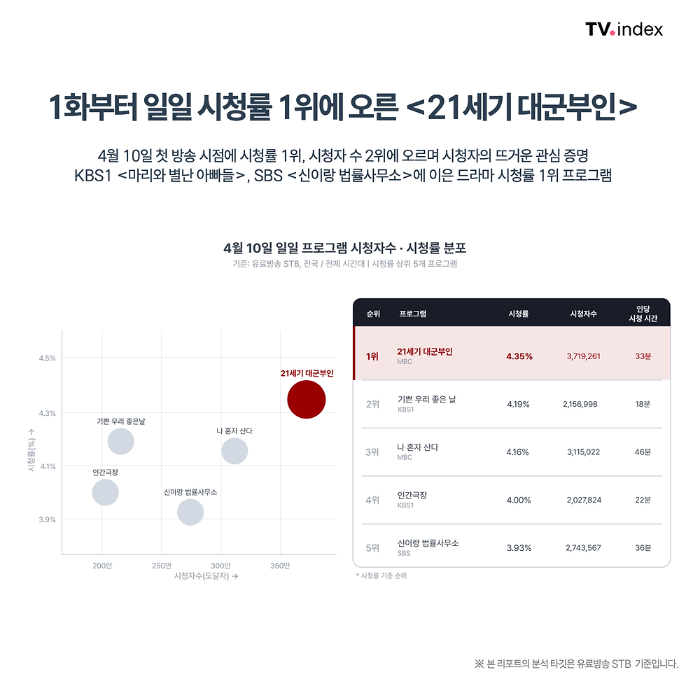 분석 대상 : 2026년 4월 10일 ~ 4월 11일 <21세기 대군부인> 1화 본/재방